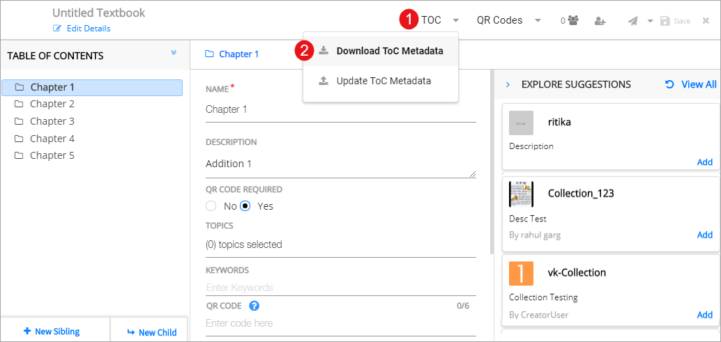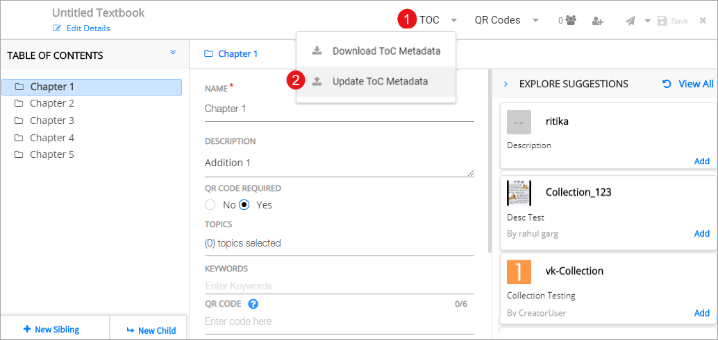 1. Click ToC 2. Click Update ToC Metadata | ![]() |