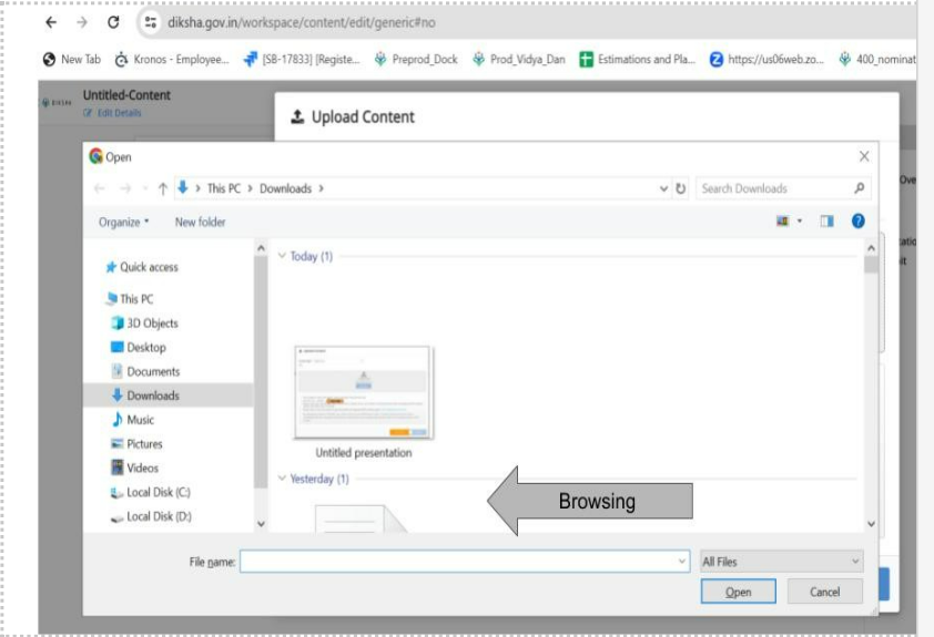 A content creator may create content without using DIKSHA Content creation platform. They can create and save those content on their system (laptop, desktop, etc). They can upload the content which are saved on their local using Upload Content feature of the DIKSHA portal. DIKSHA supports the following content formats: