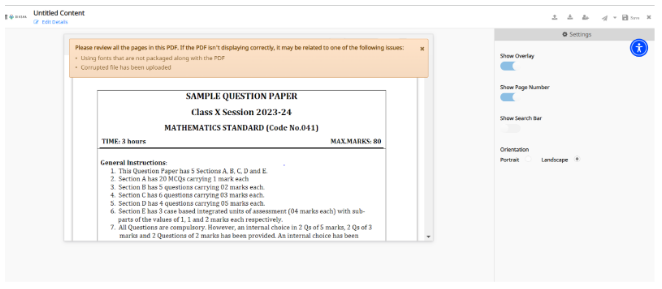 Note: The PDF supports only noto-sans fonts of different languages while rendering on the mobile application. Refer Supported Font Types 2. Click Browse to select the desired file for upload from your local system (laptop, desktop, etc). You can alternatively Drag & Drop files from your local 3. Click Upload to upload the selected content | ![]() |