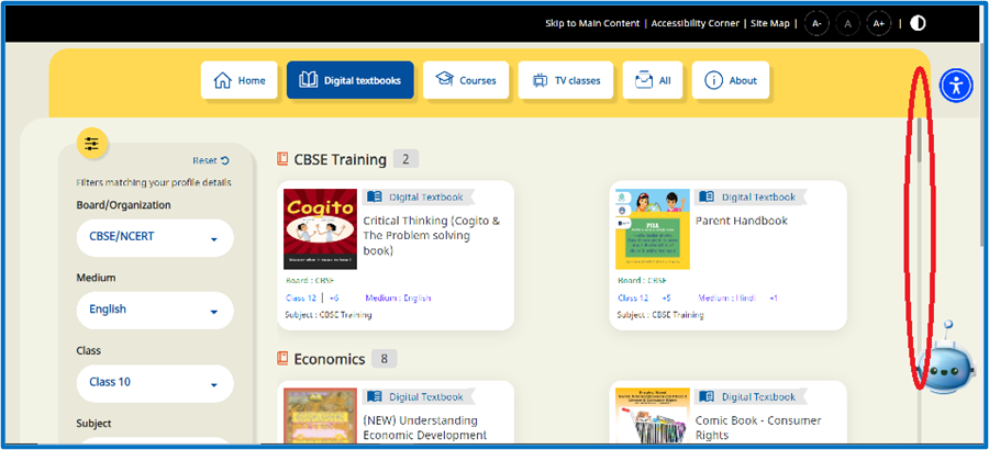 A dedicated textbook tab is been there for the ETB’s. It will be like as below. If there are more than one digital textbook cards on filtering, then the scroll bar will appear for easy access.