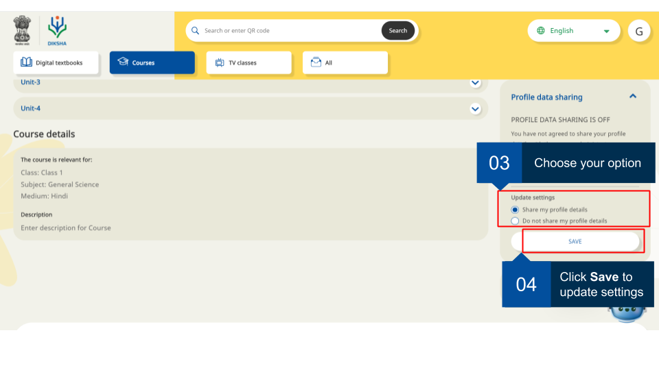 When you enrol for a course, you have the option to share or not share your profile data with the course administrator.