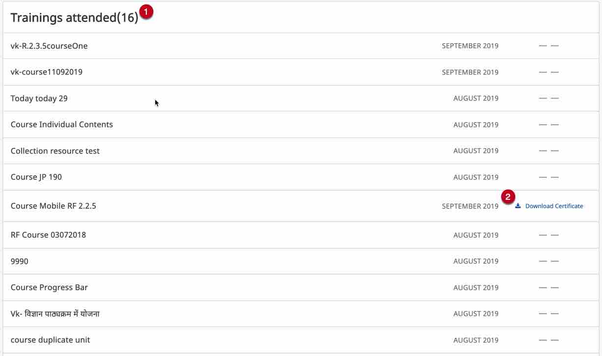 1. Scroll down to Courses attended section of the Profile page