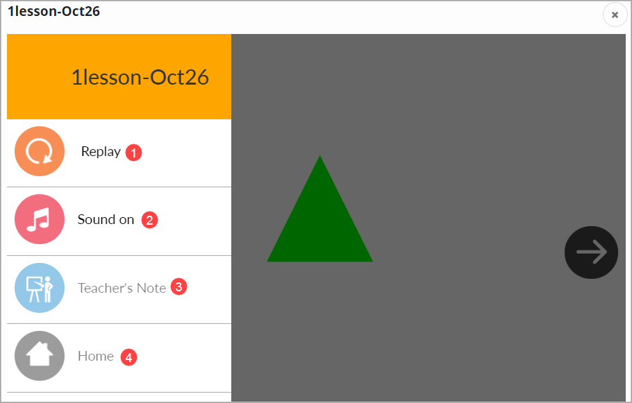 1. Click Replay to replay the study material 2. Click Sound on to turn on or off sound for audio or video study material 3. Click Teacher’s Note to view teacher’s notes for the current course material 4. Click Home to navigate to the Homepage | ![]() |