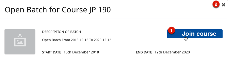 1. Click Join to join the course Note: A user can voluntarily join or leave an open course | ![]() |