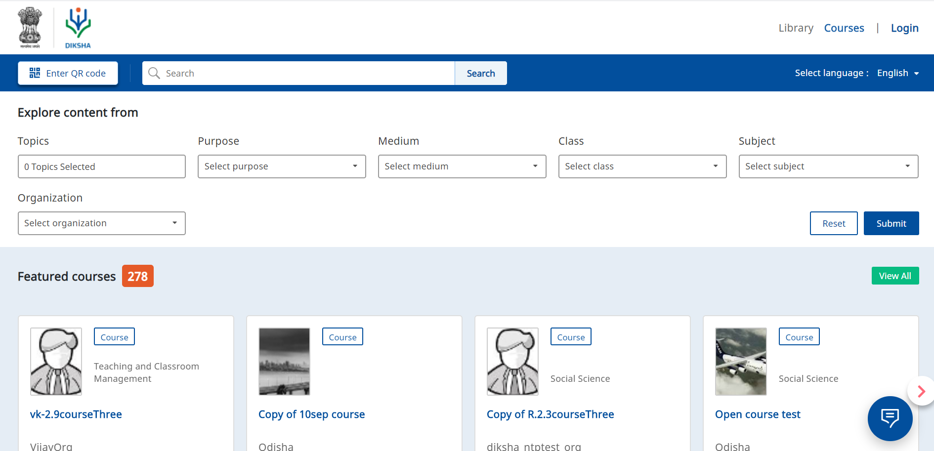 Latest courses: This category displays a list of the courses most recently added to DIKSHA.