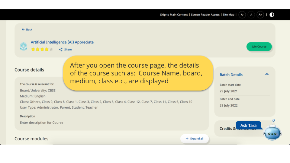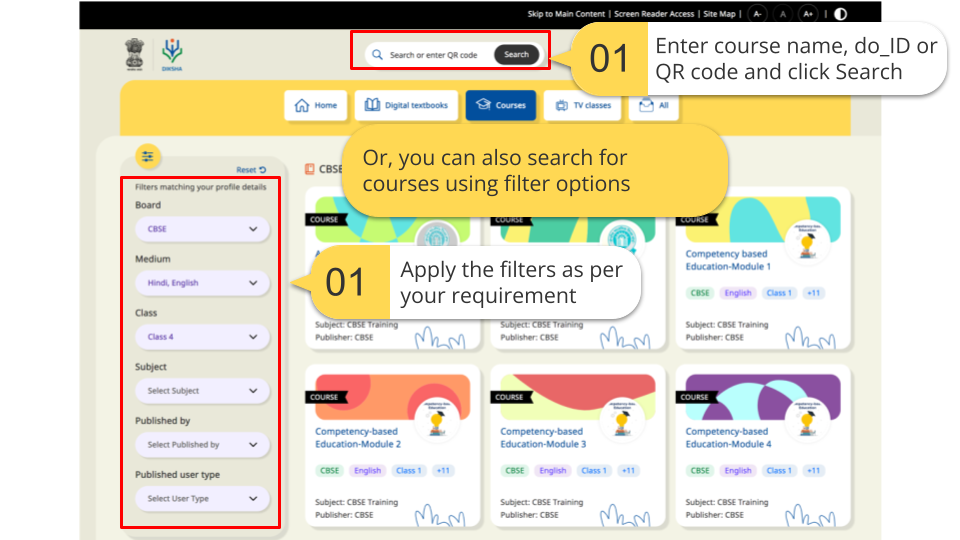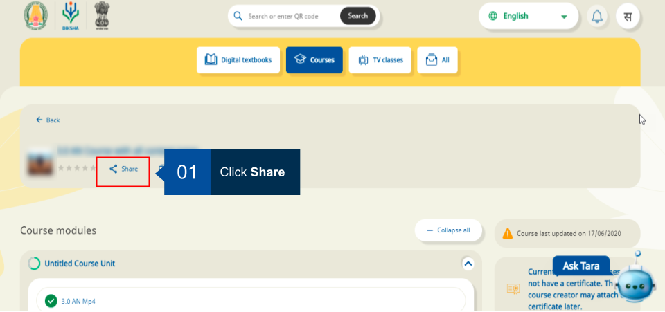 DIKSHA courses are created by course creators or mentors and can be viewed by both guest users and signed-in users. A guest user can only open and view the structure of the course on the DIKSHA portal while a signed-in user can also join a course. Guidelines to join a course vary for each course and depend on the discretion of the creator or mentor.