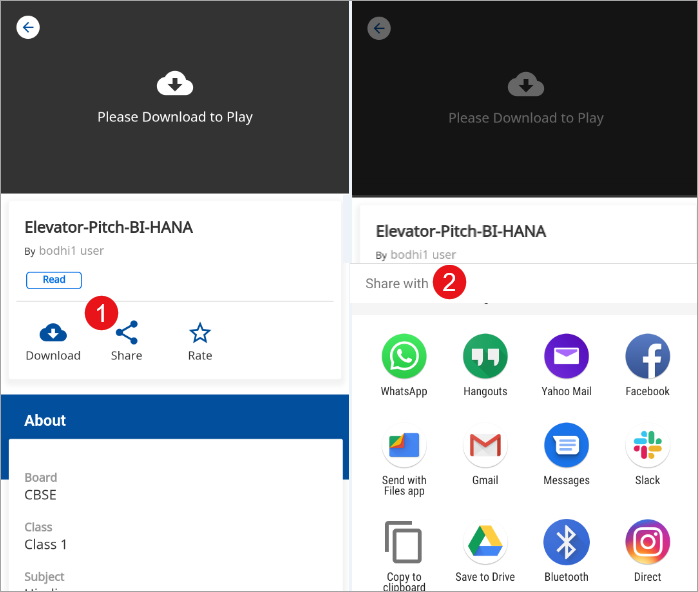 1. Tap Share icon to share the course content 2. Select a channel to share the course from different options | ![]() |