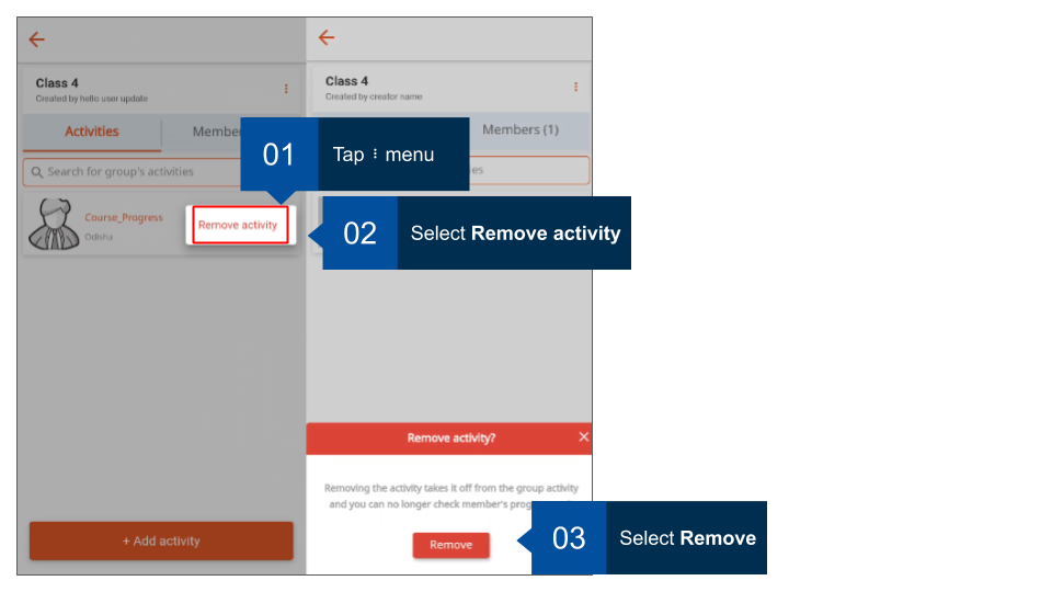 As a group administrator, you can add activities for the group. Courses too are added as activities. Members can join and complete these courses.