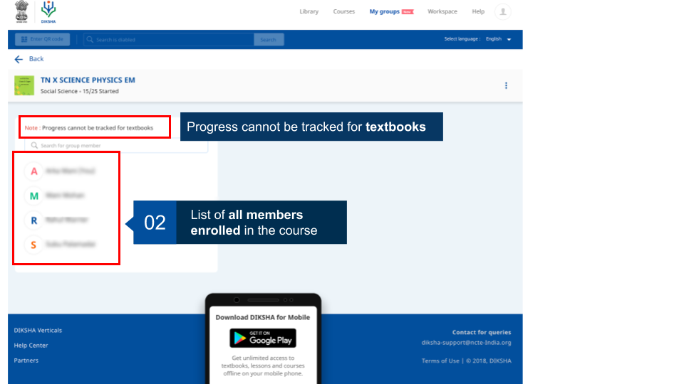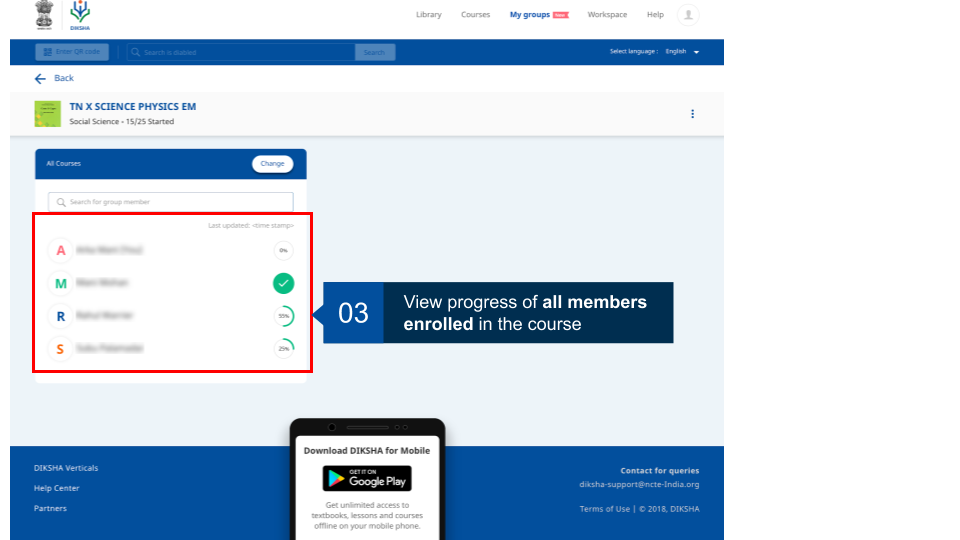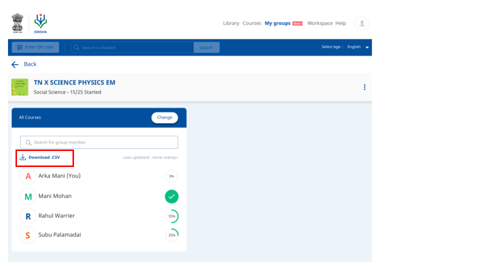Group admins can download and share a .csv file containing the progress of group member and their activities
