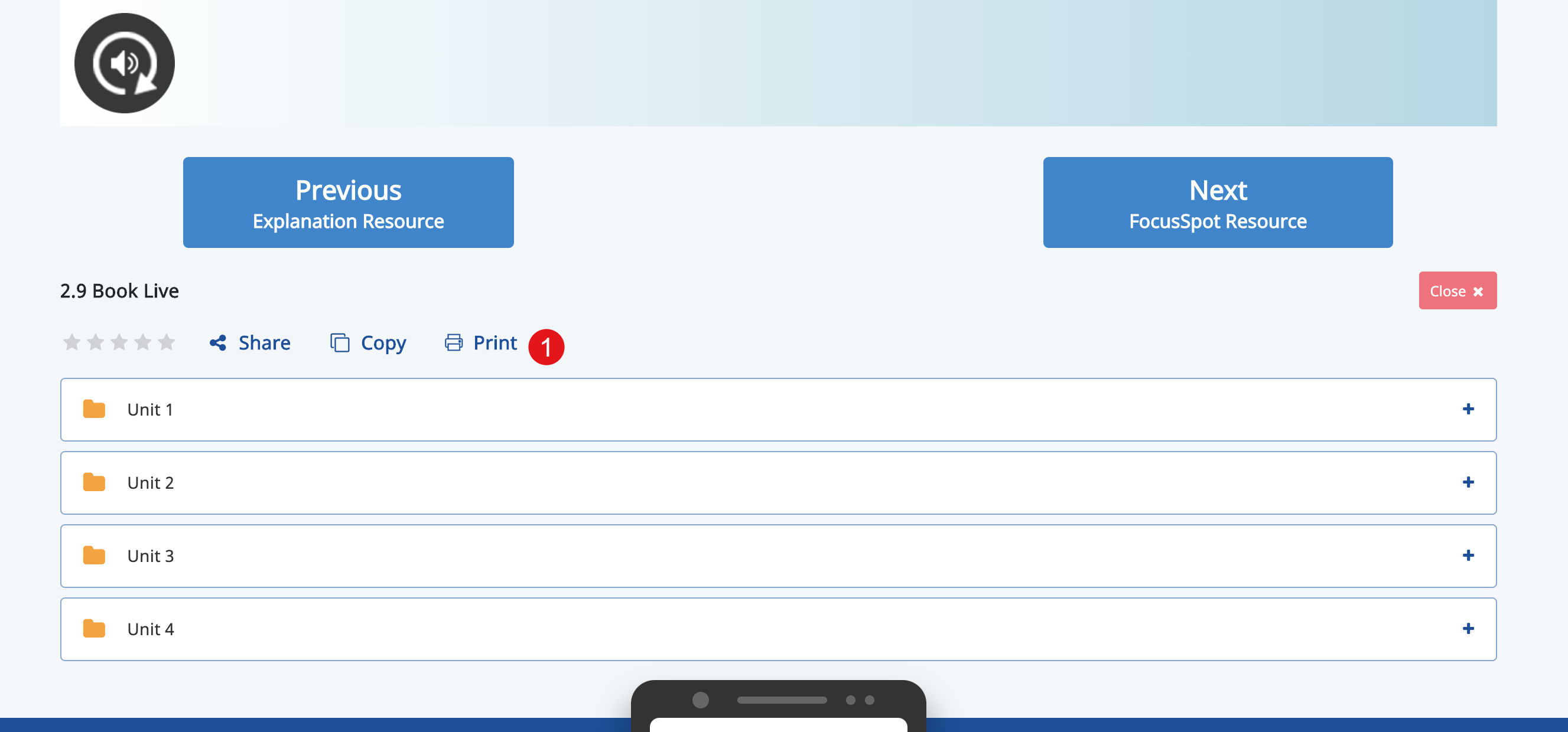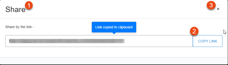 3. Click COPY LINK to copy the link 4. Click X, close icon to go back to the content player | ![]() |