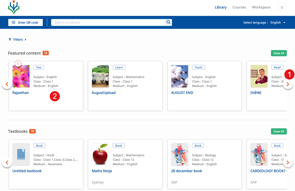 A Library typically refers to a space, housing a large collection of books, resources or information. Extending the literary meaning, Library, a key module of DIKSHA displays all content created or uploaded on the platform. The library is accessible to all registered users.