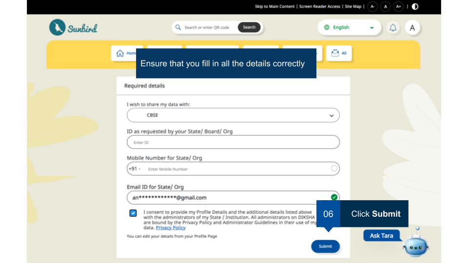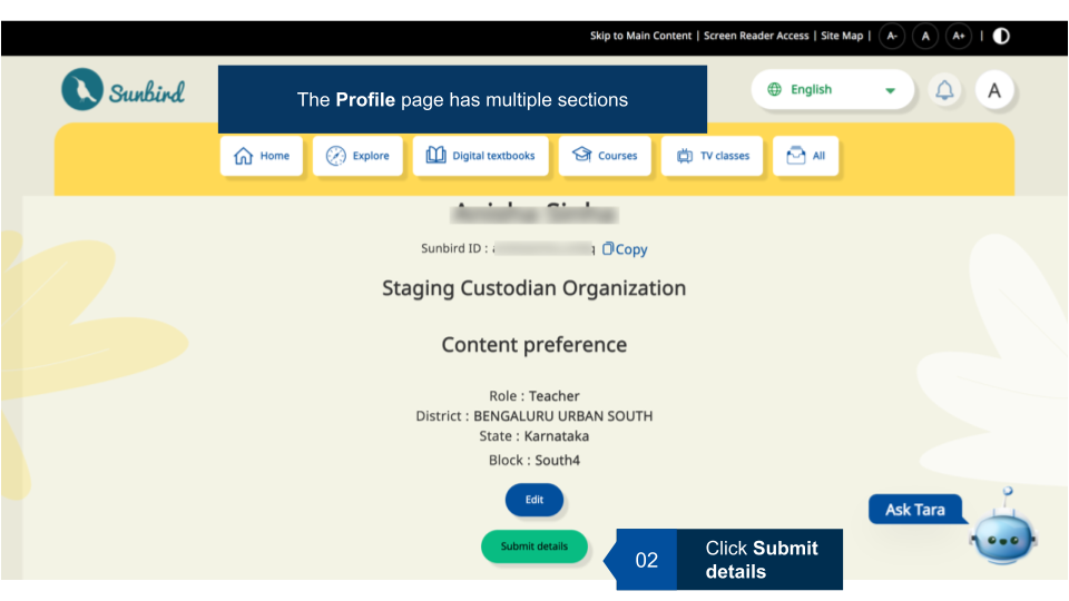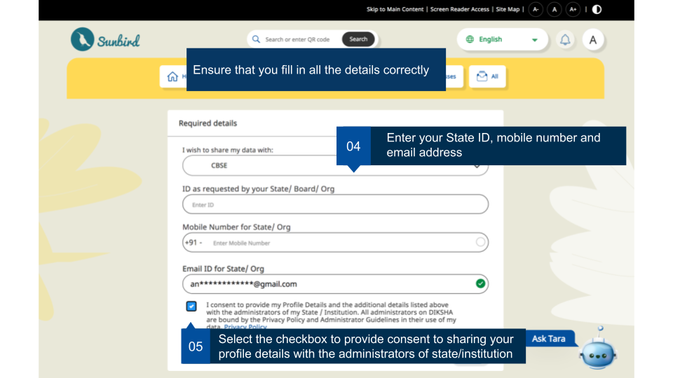 DIKSHA mandates its logged-in users to declare their details. Users can submit all necessary information through their profile on DIKSHA.