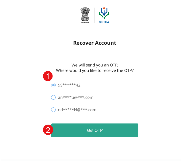 1. Select the email address or the phone number where you would like to recieve the OTP