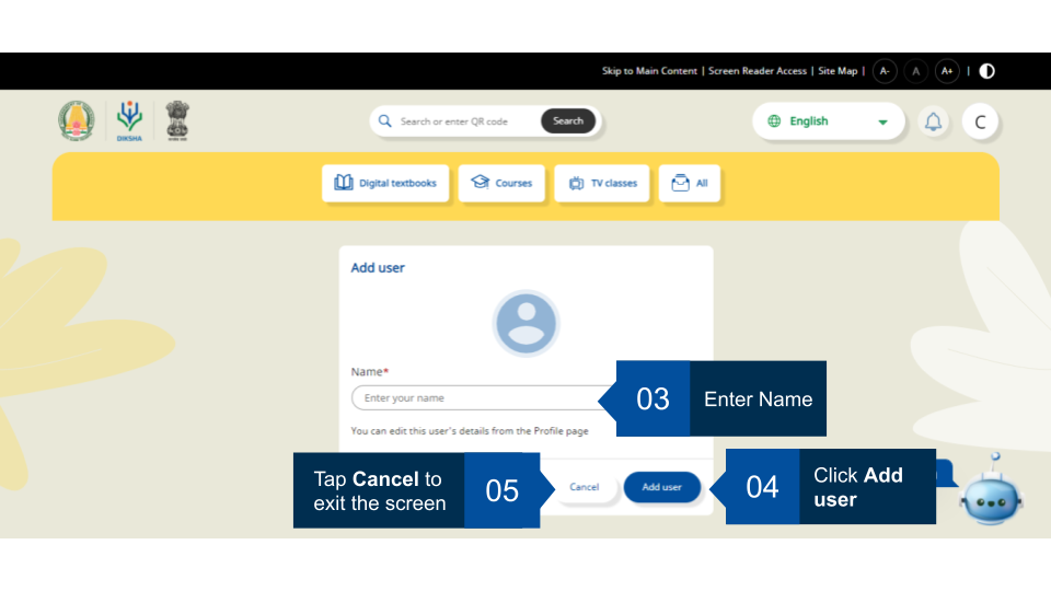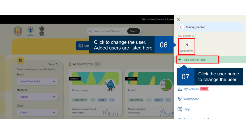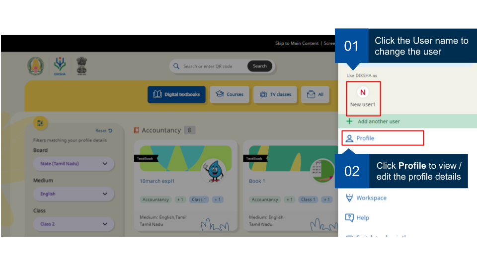 You can create multiple user profiles under the same persona; it helps to keep track of the activities completed by each user. Courses attended by the users are automatically updated when a user completes a course on DIKSHA. Users can edit the user profile details as per requirement.
