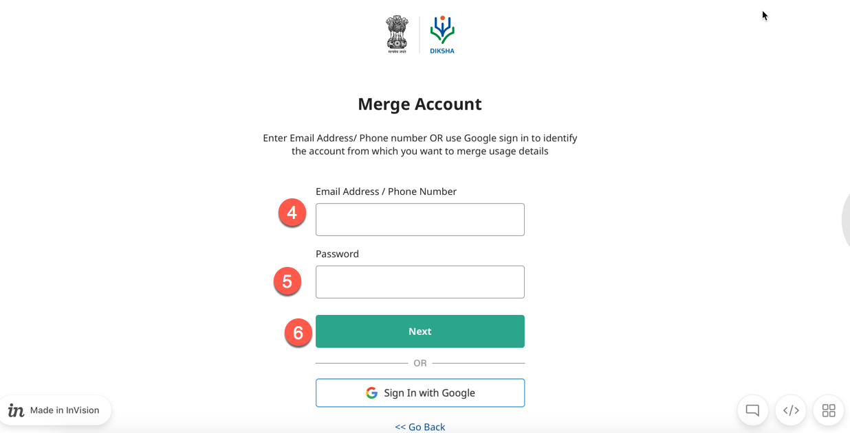 4. Enter your Email Address/Phone Number or use Google sign in registered on DIKSHA to identify