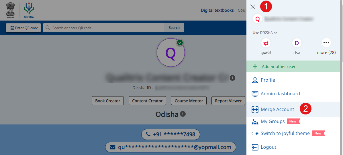 For example, let us consider a user has taken a course on DIKSHA by logging in using either their Google account or self-signed up account. The user now wants to reflect those usage details in his/her state account, in such scenario DIKSHA provides a feature of “Merge Account” using which the user can combine the usage details.