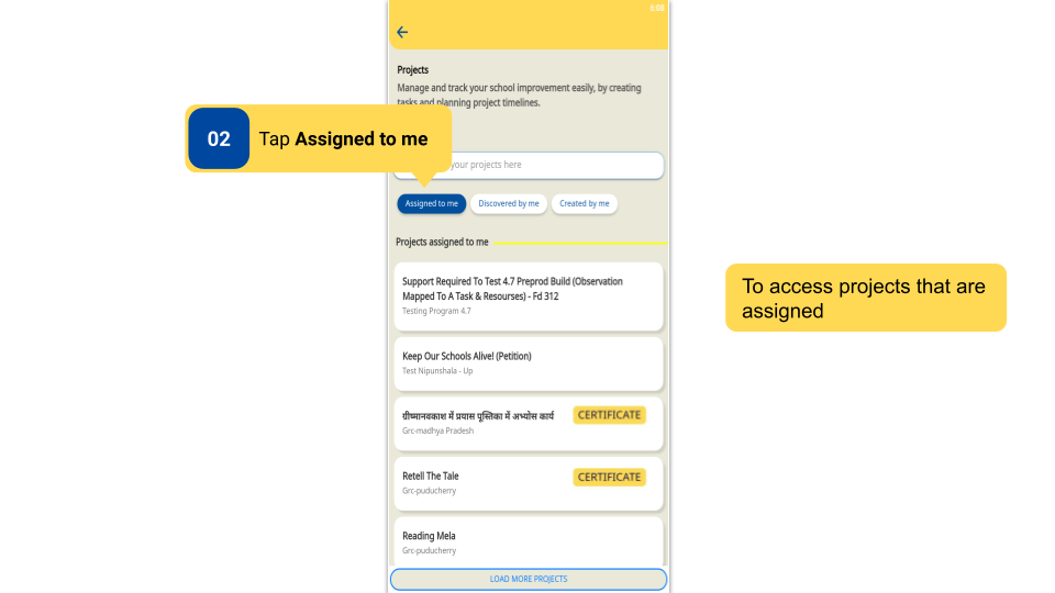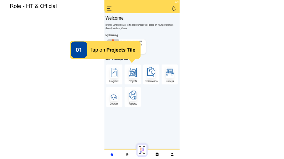 To access Projects on DIKSHA app