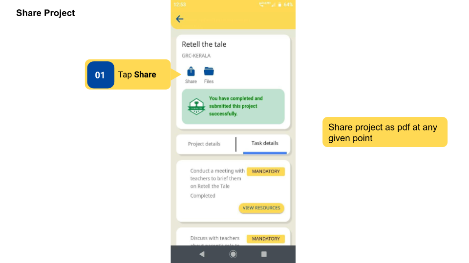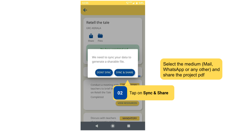 Syncing means uploading the project details to the DIKSHA Database.