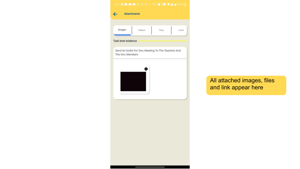 All files attached to tasks can be viewed at once in the Files section.